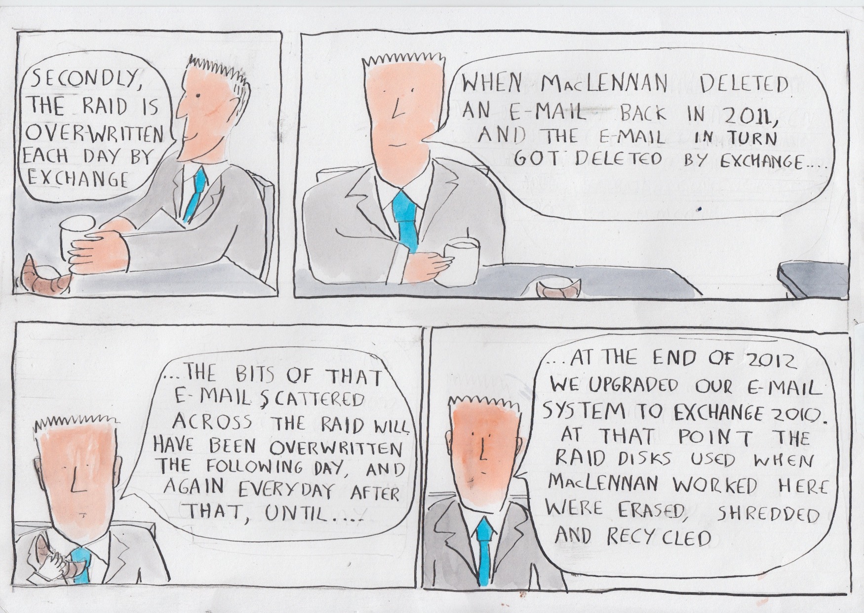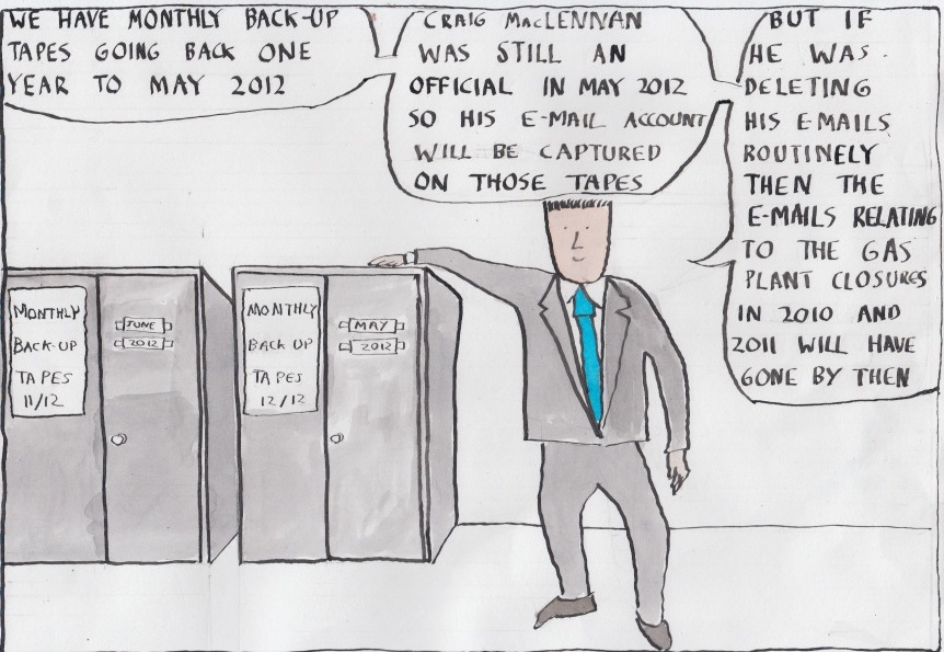 The story so far: A member of the Ontarian Parliament has alleged that Craig MacLennan had broken Ontario’s Archives and Recordkeeping Act by deleting e-mails relating to two controversial gas plant closures. The Information and Privacy Commissioner is investigating. All other attempts to locate, restore or salvage the e-mails of Craig MacLennan having failed, the last hope lies with the backup tapes