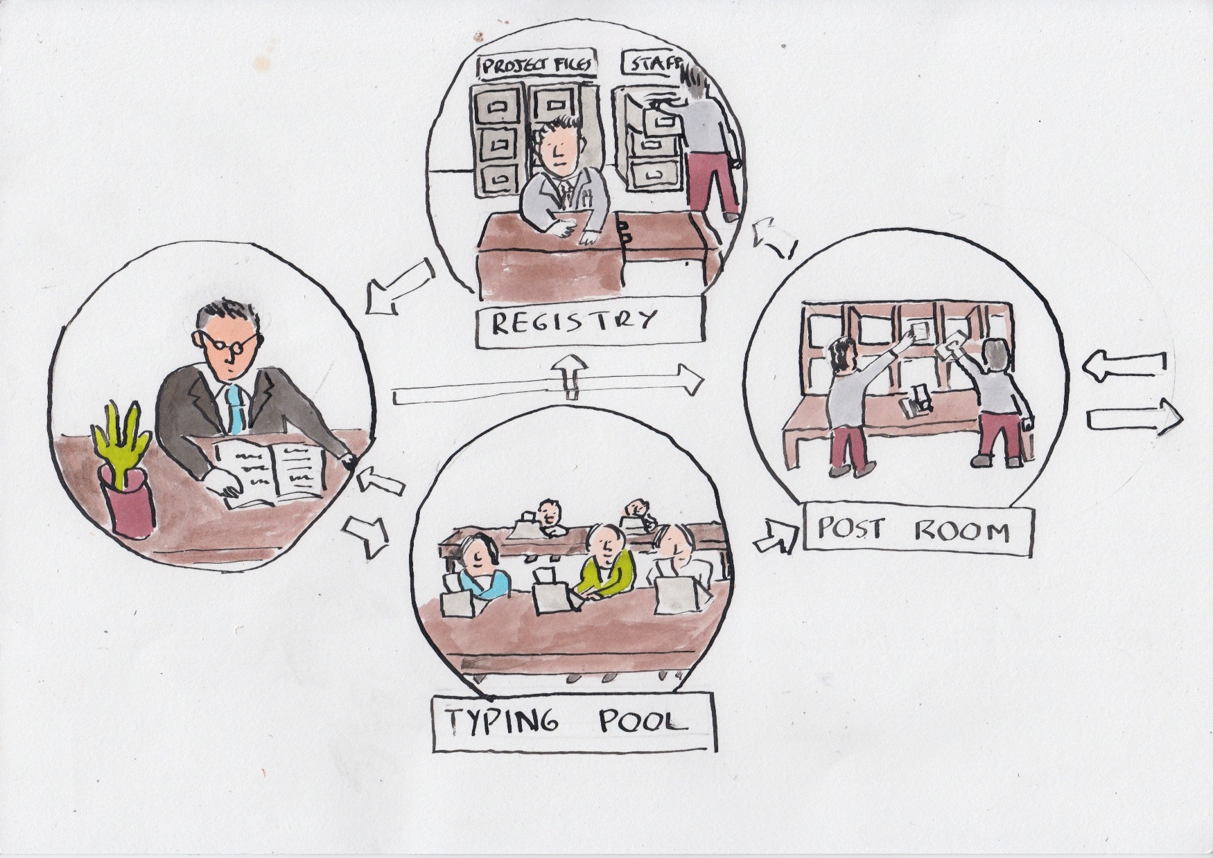 - Things that looked like business communications (letters, memoranda, reports etc.) would not be sent direct to the addressee, instead they would be sent to the relevant records registry